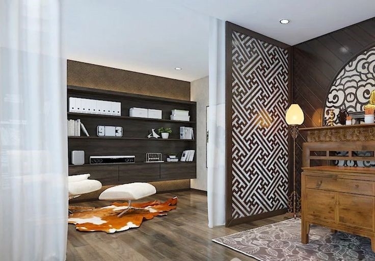 Vách ngăn CNC họa tiết hiện đại, phong cách tối giản Nhật Bản