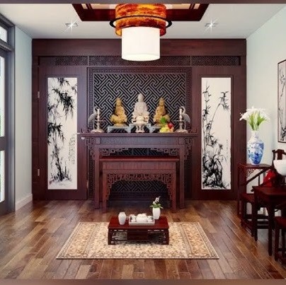 • Vách ngăn CNC phòng thờ kết hợp tủ thờ gỗ công nghiệp